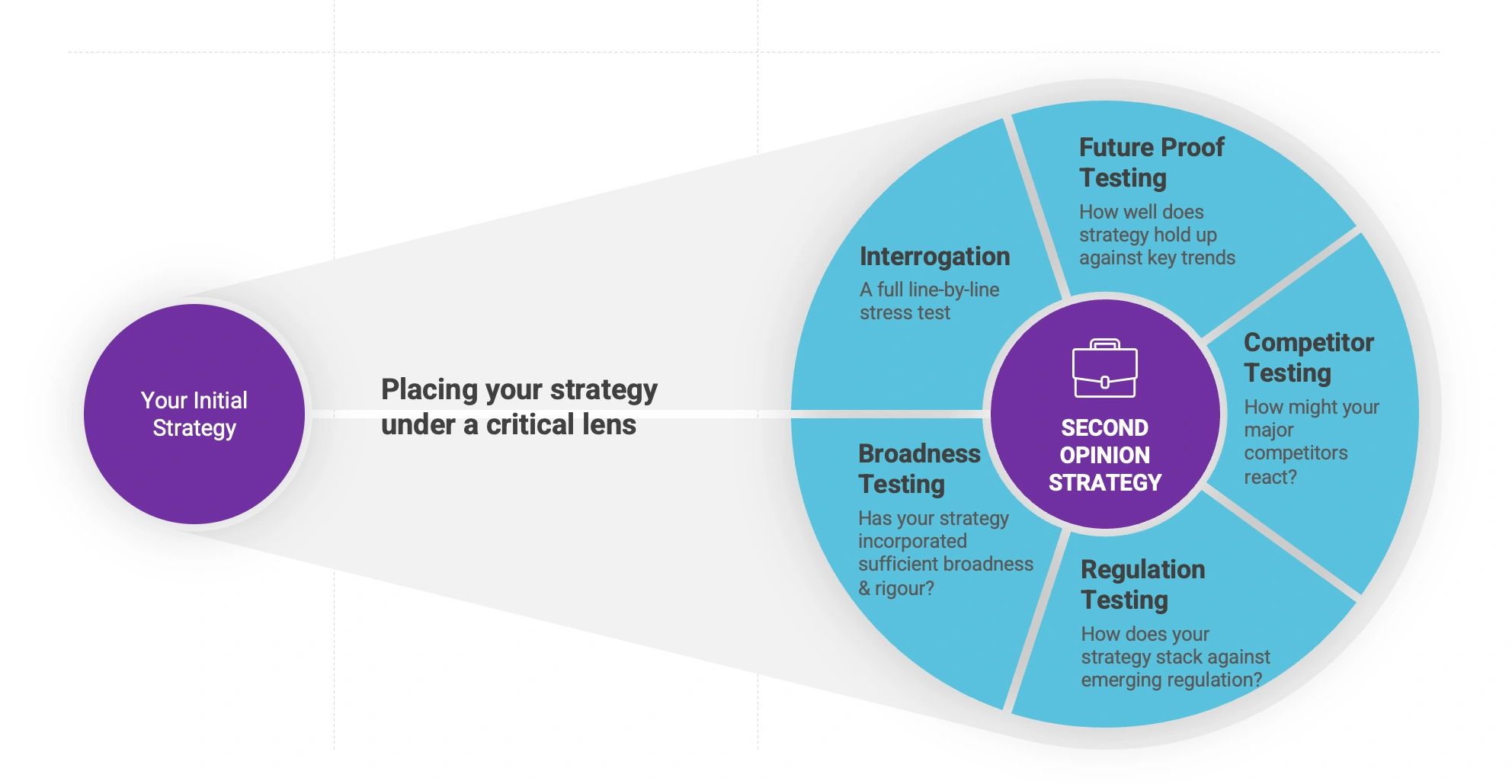 The Second Opinion Strategy uses Foresight capabilities as the antidote to groupthink. It provides a deliberately critical analysis of key documents or strategies, with a goal of using Foresight for strenuous stress testing. We will provide a service to critically interrogate your strategy and stress-test it based upon your emerging operating environment, competitor analysis and future-proofing.